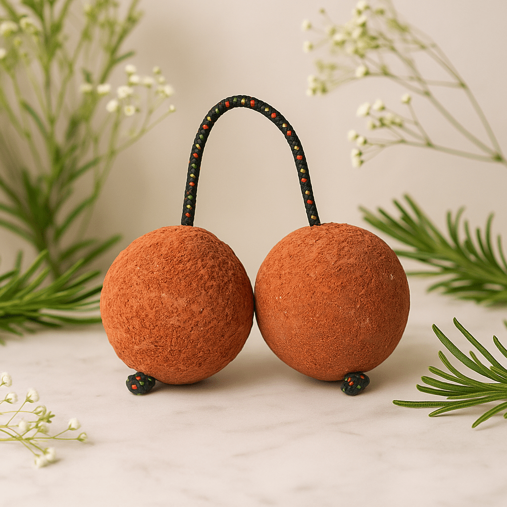 Il caldo legno opaco di suar incontra le dita—due sfere collegate con una superficie delicatamente ruvida, arcuate insieme da un cordino intrecciato leggermente punteggiato di rosso, verde e giallo. Radicato nelle tradizioni dell'Africa occidentale e abbracciato nella musica moderna, questo Kasaka/Kashaka porta un linguaggio condiviso di gioia e ritmo, realizzato qui con cura a Bali. 🥁