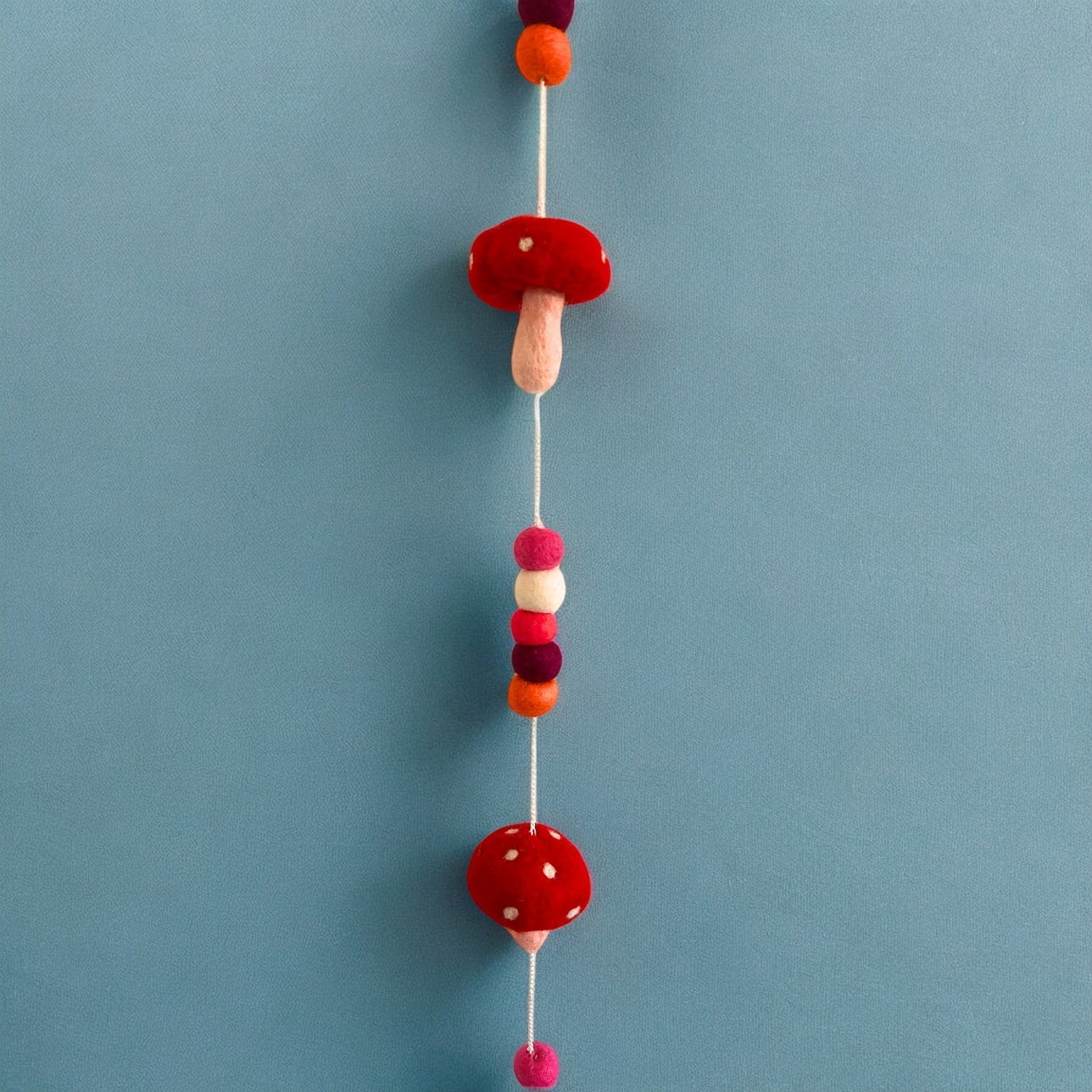 Ghirlanda di Funghi in Feltro con Palline Colorate e Campanello