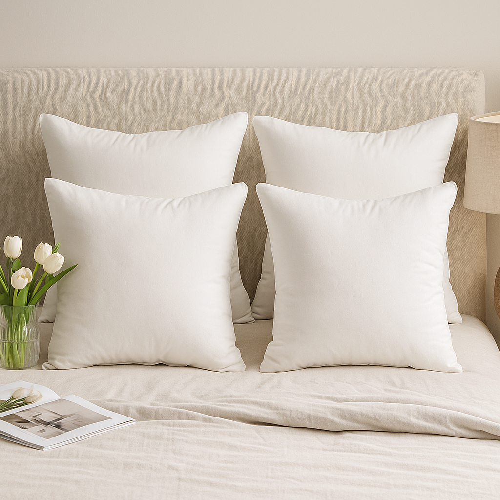 Gemaakt met een effen witte, matte stoffen hoes die glad aanvoelt, heeft het een gelijkmatig verdeelde vulling voor een afgerond, vol profiel dat gemakkelijk op te schudden is. Netjes genaaide randen met zichtbare naden houden de vorm netjes; er zijn geen ritsen, biesjes of versieringen, dus hoezen schuiven er gemakkelijk overheen. Met ongeveer 400 g biedt het een gebalanceerde, gezellige loft — licht maar geruststellend — en zit comfortabel, of het nu in een paar wordt gebruikt of als een enkele accent. 🍃
