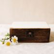 Met de hand afgewerkt in Noord-India, toont de doos het karakter van zijn materialen: donkerbruine zijkanten met zichtbare nerf, een witte bovenkant met een zacht distressed voorrand die het hout eronder onthult, en een voorste sluiting in een diepe metalen tint. Met 15 × 10 × 6 cm past hij netjes in kleine ruimtes en stapelt goed. Bewaar sieraden of herinneringen dichtbij, berg schrijfwaren op een bureau op, of gebruik het als een subtiel accent op een console. Een doordacht cadeau voor liefhebbers van rustige, goed gemaakte ontwerpen. 🌿