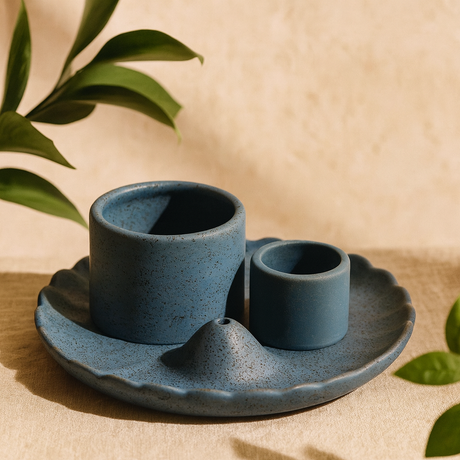 Reguliere prijs £1475Eenheidsprijs /Niet beschikbaarOp voorraadBlue Ceramic Lotus Palo Santo Sage Incense Holder