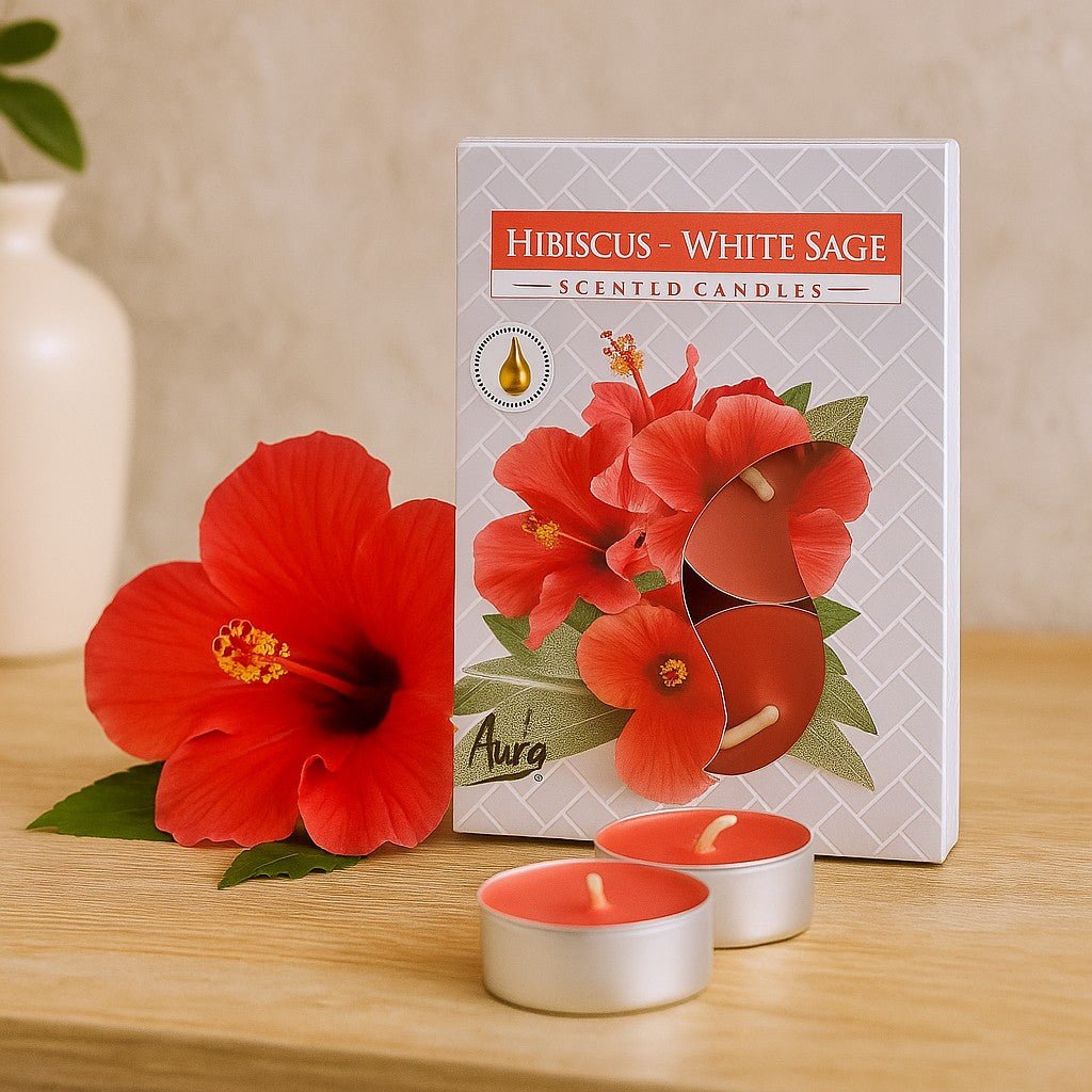 Geurkaarsen in theelichtvorm, Hibiscus en Witte Salie