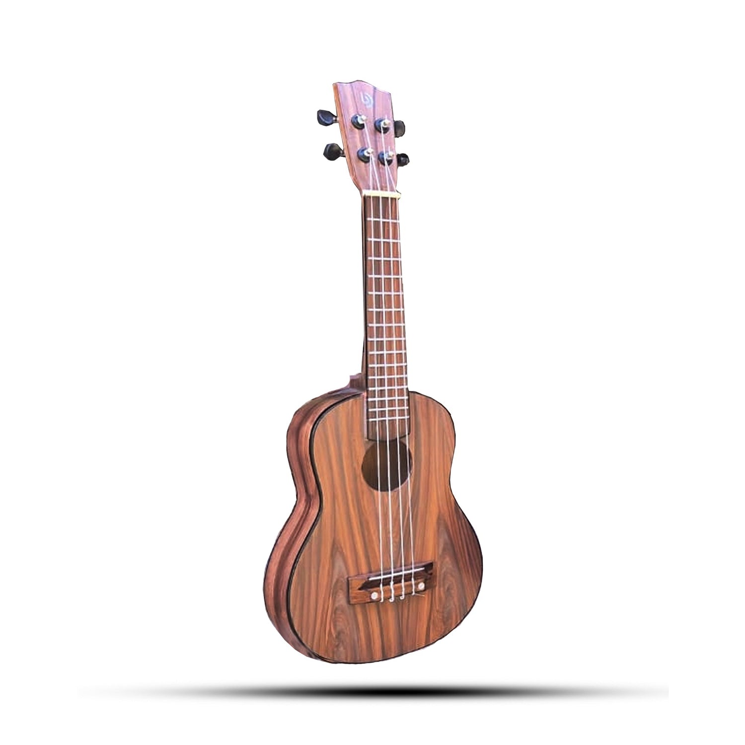 Doordachte vakmanschap bepaalt de klank en balans: een houten lichaam voor warme resonantie, een stabiele donkere brug, en lichte crèmekleurige toets en zadel die zorgen voor een zuivere intonatie. Metalen stemmechanieken met zwarte knopjes en een lay-out van twee aan elke kant houden de stemming stabiel en soepel. Het compacte formaat en de gemakkelijke klank dragen een gevoel dat vaak wordt geassocieerd met ontspanning, vrijheid en de eenvoudige geest van muziek — een metgezel voor eerste akkoorden en verfijnde fingerstyle, even thuis in rustige oefening als het hart van een samenzijn.
