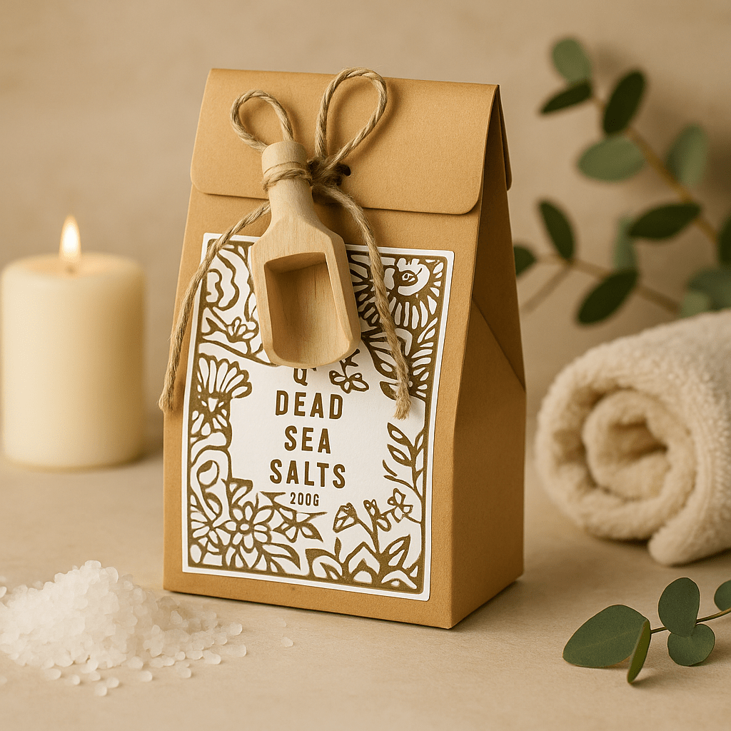 Uparfymert Dødehavs-salt helles i bleke, grove korn og løses opp i et mykt saltvannsbasseng, som etterlater vannet silkeaktig mot huden. Duften er ren og stille—en mild mineralhvisking—slik at øyeblikket forblir rolig. Rik på naturlig forekommende magnesium, kalsium og kalium, støtter de hudens balanse og hjelper til med å glatte ut ruhet for en forfrisket, behagelig følelse. Forankret i bade-tradisjoner rundt Dødehavet, er dette et enkelt, gjenopprettende bad. 🌊