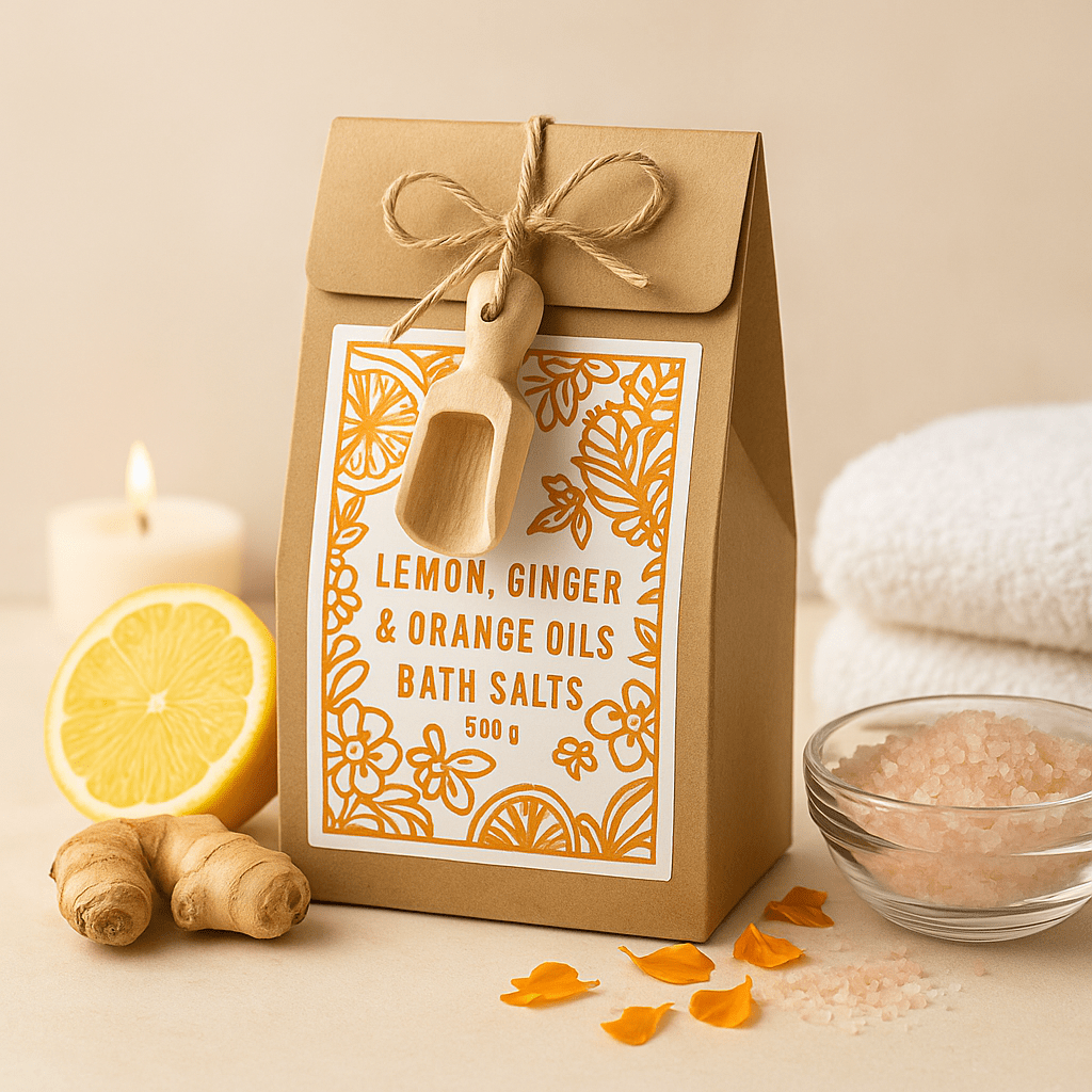 Varmt vann, jevn pust og den lyse løften av sitrus. Rosa Himalayasaltkrystaller løses opp mens sitron og søt appelsin stiger, avrundet av den milde varmen fra ingefær. Kroppen slapper av; sinnet blir stille. 🍋🛁