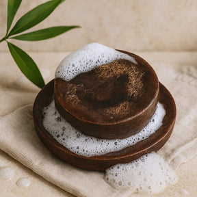 Mørke, jordnære brune toner møter en matt, værbitt finish; lysebrune fibre buer over overflaten og gir den en funksjonell, naturlig skjønnhet. Følelsen er fast og stødig, berøringen lett teksturert. Duften forblir subtil og ren med et varmt, ristet hint av kokosfiber. Presentert enkelt, klar for vask eller dusj.
