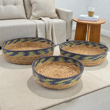 Brettkurver i strå og sjøgress – Naturlig grønn og blå – Sett med 3