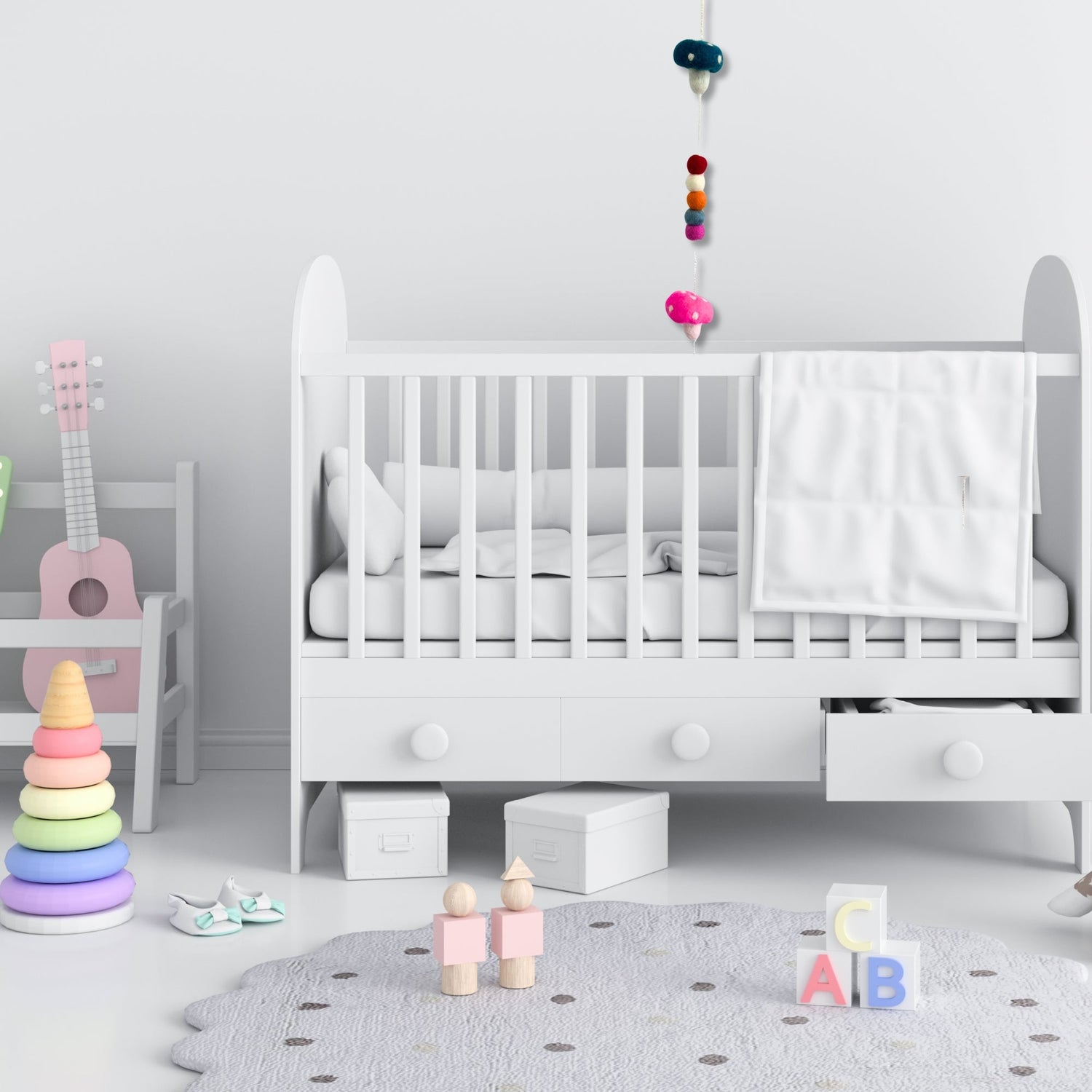Teksturen er mykt lodden med en rolig, matt finish. Runde hetter med hvite polkadotter og korte stilker veksler med små filtkuler i nyanser som blågrønn, rosa, rød, oransje, grå og offwhite. Med en lengde på 110 cm trekker dens vertikale flyt blikket i en jevn linje, og gir balanse og tilstedeværelse. Lett og enkel å henge opp, passer den godt i bohemske kroker, rustikke treinnredninger eller enkle minimalistiske rom—søt for barnerom og lekne lesekroker også. Håndfiltet naturlig ull på en lett snor; kun til dekorasjon—ikke et leketøy. 🧶