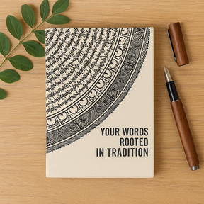 Lagget av lokta-papir—tradisjonelt håndlaget i Nepal av barken fra Daphne-planten—bærer denne notatboken en langvarig arv av holdbare, arkivvennlige skrivematerialer brukt til viktige tekster. Det sirkulære mønsteret gjenspeiler mandalainspirerte former som ofte sees i Himalayas kunst, bredt anerkjent som symboler på balanse og helhet, og holdes nær som en samlende tilstedeværelse i dagliglivet. 🌿