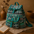 Wykonany z etnicznej tkaniny żakardowej, ten plecak prezentuje taniec zielonych i morsko-zielonych tonów przeplatanych czarnymi i białymi akcentami, tworząc geometryczne motywy opowiadające historie odległych krain. Dotykowa jakość tkaniny jest uzupełniona kontrastującymi, jednokolorowymi lamówkami i paskami, dodającymi odrobinę elegancji jego boho urokowi. Przemyślany projekt obejmuje górną klapę z paskiem i klamrą, przednią kieszeń naszywaną dla szybkiego dostępu oraz boczny zamek błyskawiczny dla łatwej organizacji. Regulowane paski na ramiona z tkaniny oraz górny uchwyt z tkaniny zapewniają komfort, czyniąc go zaufanym towarzyszem zarówno codziennych przygód, jak i dłuższych podróży. ✨