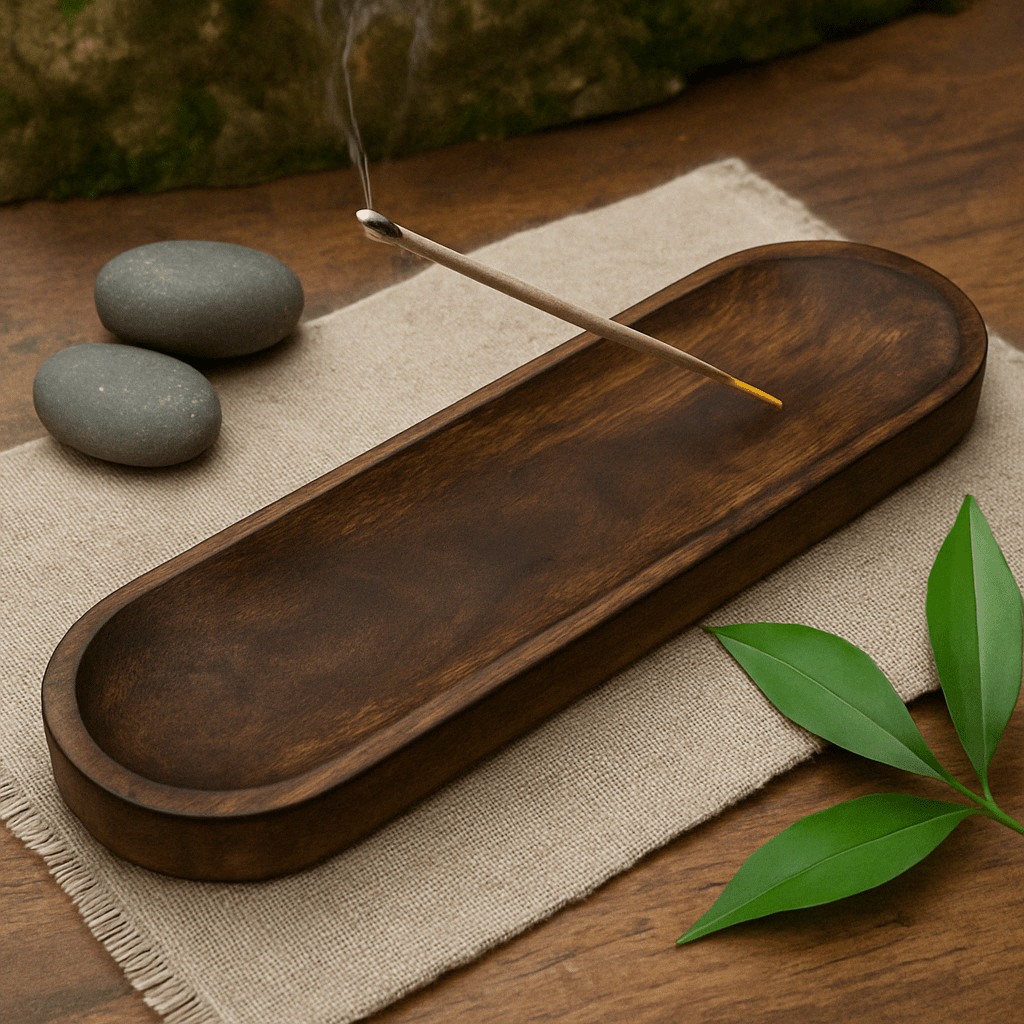 Ciepły owal z drewna mango zamienia kadzidło w prosty, stały rytuał. Zakorzeniona w codziennym rzemiośle Indii i długiej tradycji kadzideł, ta taca oferuje ciche miejsce na osadzenie popiołu i rozwinięcie zapachu. 🕯️