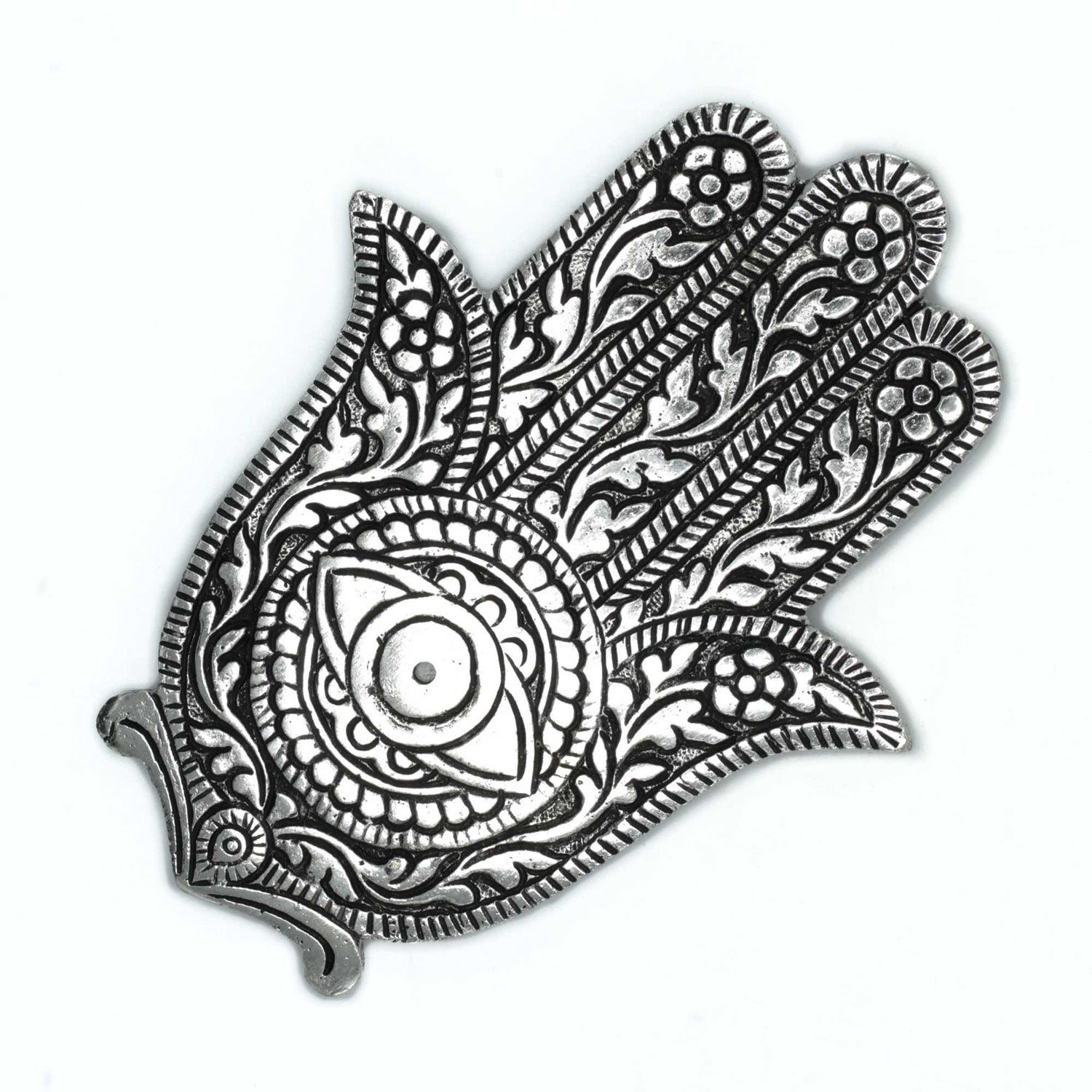 Podstawka na kadzidło w kształcie ręki Hamsa, polerowane aluminium, 14cm