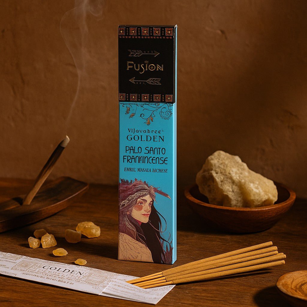 From the Vijayshree Fusion line of Ethnic Masala Incense, this Indian-crafted blend brings two time-honored aromatics into calm balance. The scent opens with sparkling citrus and pine, moves through honeyed, balsamic resin, and settles into smooth woods with a faint, clean smoke. Palo santo, a fragrant wood appreciated in parts of South America for its aromatic smoke, is known for gentle citrus-woody tones; frankincense, an ancient resin used across India, the Arabian Peninsula, and East Africa, offers a clear, lemon-balsamic brightness. The mood is warm, lucid, and unhurried—easy to live with, easy to return to. 🌿