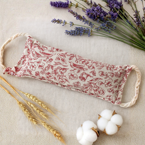 Soft cotton settles over the eyes, a gentle weight easing across brow and temples as the quiet scent of natural lavender rises. The fabric feels calm against the skin, and the subtle botanical motif whispers of garden stillness. 😌