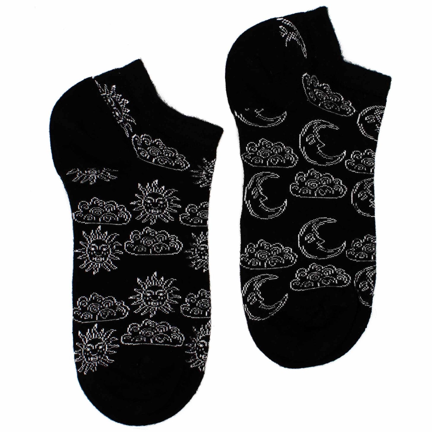 Soft and low-cut, these cozy socks bring a quiet kind of ease to your day. A black base with fine white celestial stitching — crescent moons, radiant suns, and gentle clouds — adds a subtle note of character. Across many cultures, the sun and moon speak to balance and the rhythm of time; this motif offers a calm reminder of harmony in the everyday. 🌙☀️