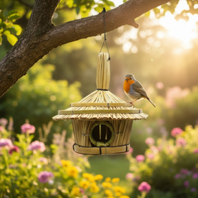 Pendure a 1,5–3 m de altura em sombra dappled, com a abertura virada para longe dos ventos predominantes, com um caminho de voo claro. Um presente pensado para jardineiros e amigos amantes de pássaros. 🎁