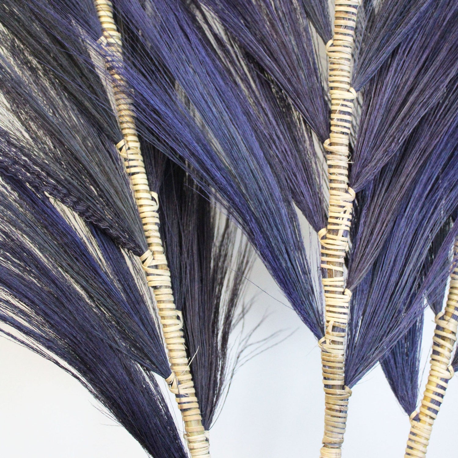 Feito de capim rayung naturalmente seco, apreciado na Indonésia pela sua beleza simples e durabilidade, cada caule apresenta um eixo esguio de cor natural com uma pluma arejada de fibras finas. O tom profundo índigo-púrpura adiciona um toque de cor sólido, enquanto bandas subtis e alternadas ao longo dos caules criam um detalhe riscado refinado. Os capins têm sido há muito tempo um símbolo de renovação sazonal; dispostos em casa, oferecem uma referência discreta à abundância e ao crescimento. De baixa manutenção e duradouros, apoiam uma abordagem ecológica à decoração.