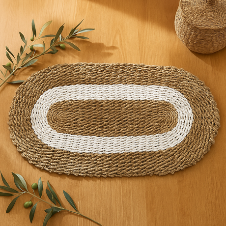 Preço regular £3815Preço unitário /IndisponívelEm stockTapete de erva-marinha oval branco e bege 60x120 cm