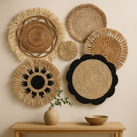 Preço regular £755Preço unitário /IndisponívelEm stockConjunto de Arte de Parede em Capim-Marinho com Três Tigelas Pretas