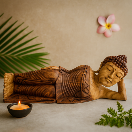 Preço regular £9223Preço unitário /IndisponívelBaixo stockEstátua de Buda Adormecido em Madeira Suar - 50 cm