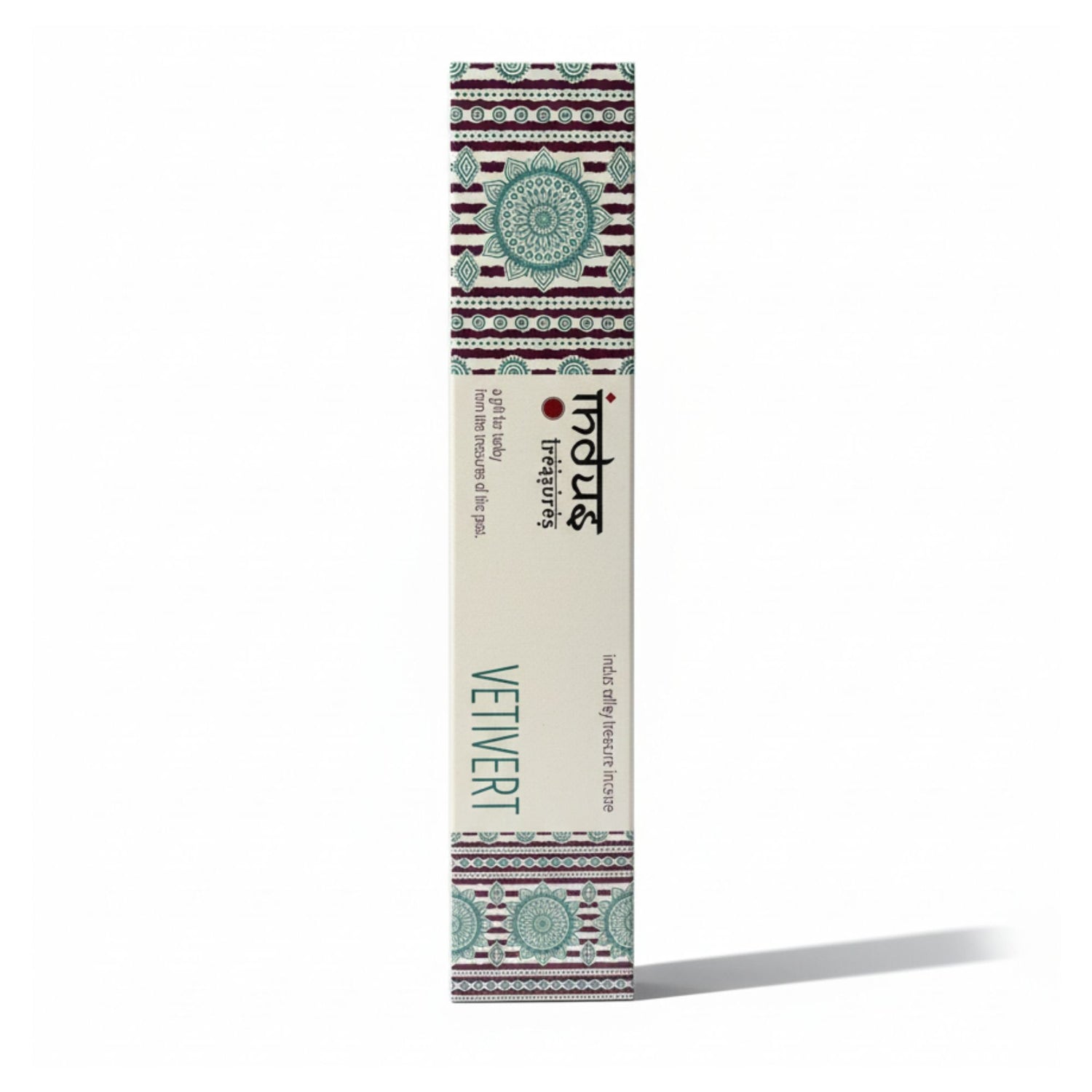 Each hand-rolled incense stick burns with an even, gentle trail, suited to quiet mornings or evening wind-downs. In many South Asian traditions, vetiver (khus) is loved for its cool, earthy aroma—roots woven into mats and screens to scent summer air, and used in incense and perfumery for its depth. The teal mandala motifs on the slim white box nod to balance and wholeness, a pattern often used as a meditative focus in daily life. Light the tip, let it glow, then enjoy a soft, unhurried fragrance. A thoughtful gift for those who appreciate green, grounded scents.