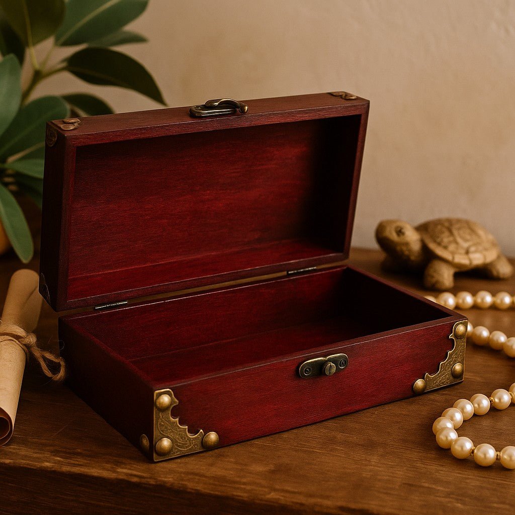 Căldura liniștită a lemnului întâlnește aici un scop clar: o cutie de depozitare dreptunghiulară cu linii calme, drepte și o patină adâncă roșu-maronie care pare atât rafinată, cât și familiară. Încuietoarea cu tonuri de alamă adaugă o notă vintage delicată, aducând un accent echilibrat pe birou, lângă pat sau pe raft. 🍂