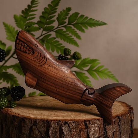 Preț obișnuit £1300Preț unitar /IndisponibilÎn stocCutie de puzzle secretă din lemn, rechin fericit