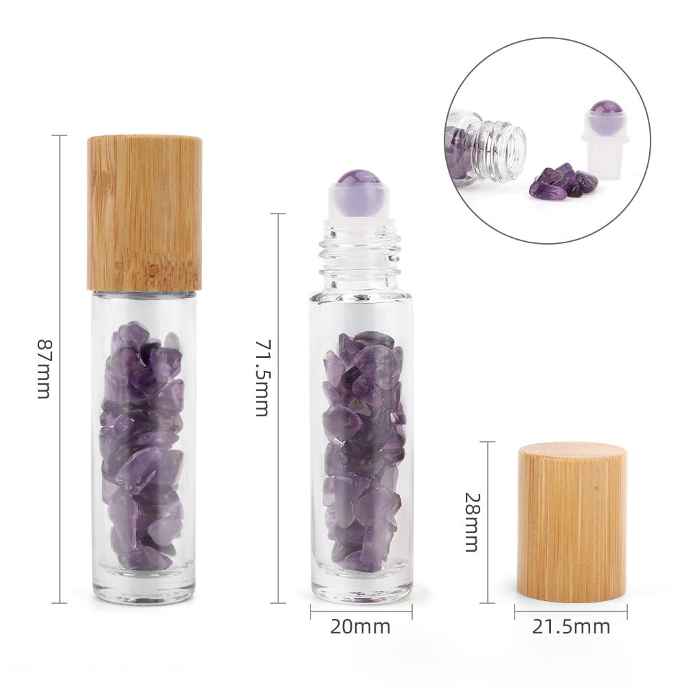 Sticlă cu role pentru ulei esențial - capac din lemn de ametist