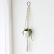 Fibrele naturale moi și răsucite atrag privirea în sus, ridicând verdeața cu o înălțime delicată și o textură țesută manual. În tonuri calme, alb-crem, acest suport macramé pentru plante încadrează o plantă cu căldură și lumină, aducând moliciune în colțuri, ferestre și pereți liniștiți. 🌿
