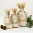 Set de 3 săculeți cadou de Crăciun din iută cu fulg de zăpadă