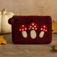 Portofel cu fermoar din fetru lucrat manual, design ciupercă, roșu închis
