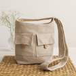 Geantă crossbody din bumbac cu două buzunare piatră medie