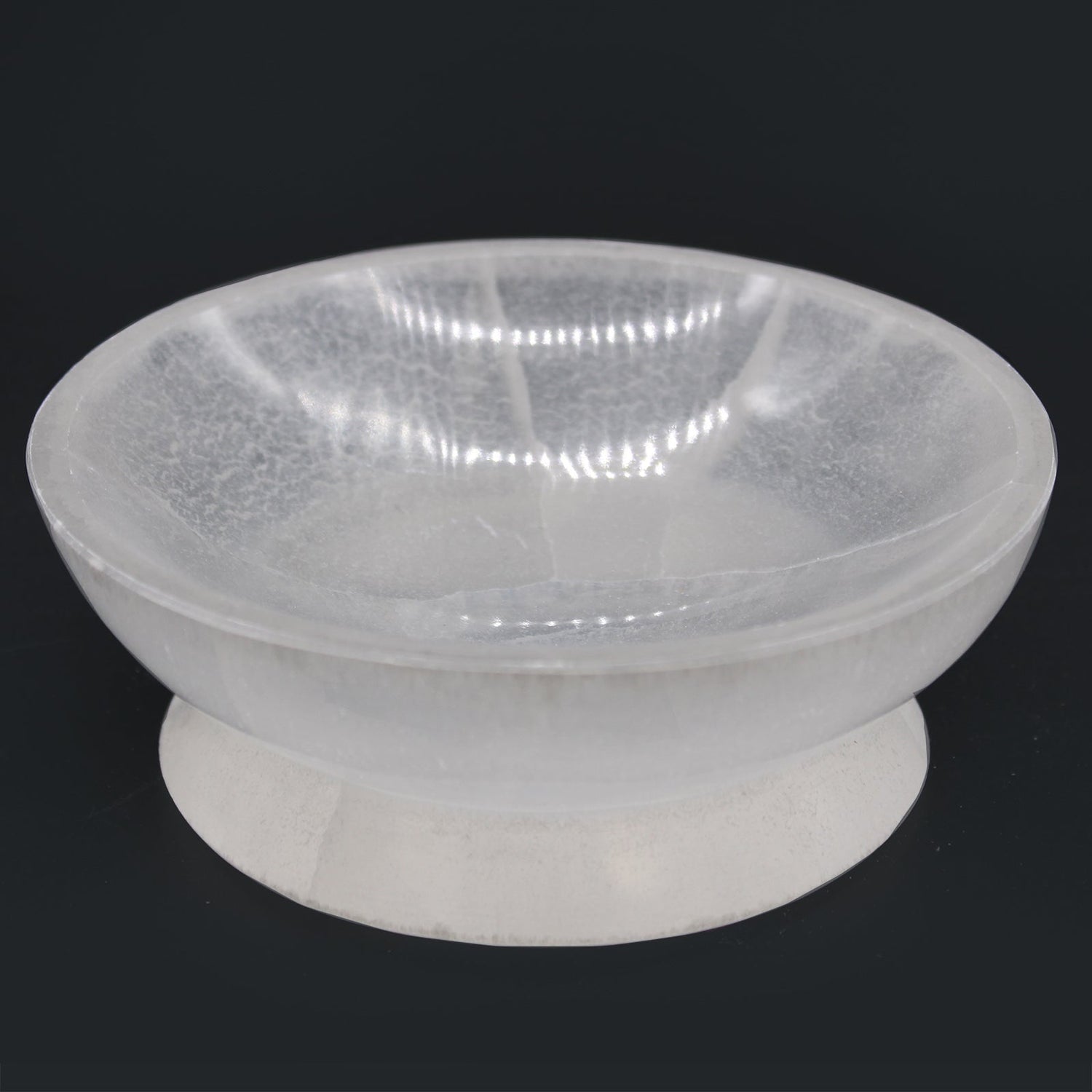 Sculptat din selenit natural, translucența sa înghețată și finisajul neted, ușor mat, oferă un strălucire blândă altarului. Profilul jos, rotund, cu o margine ușor evazată și partea superioară concavă și puțin adâncită primește ofrande — câteva petale, un praf de ierburi, o linguriță de apă sau un con de tămâie odihnitor (adăugați puțin nisip pentru protecție termică). Selenitul își ia numele de la Selene, luna în tradiția greacă, și este asociat pe scară largă cu claritatea, lumina blândă și purificarea; mulți îl păstrează în spațiile de meditație ca un memento calm de a face o pauză și a se realinia. Fiecare piesă este unică, cu variații naturale subtile; aproximativ 13–15 cm în diametru. Ștergeți după utilizare și evitați înmuierea, deoarece selenitul este o piatră moale, sensibilă la apă. 🌿