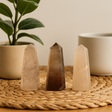 - 🪨 Natural smoky quartz: Translucent beige–brown tones with organic inclusions.