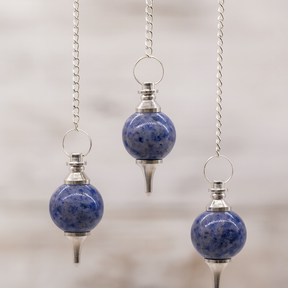 Холодная на ощупь, глубокая синяя сфера содалита покоится под серебристой цепочкой, её пятнистый узор ловит мягкий свет, когда она успокаивается. Простой, сбалансированный маятник для моментов, когда вы хотите, чтобы ваши мысли утихли, а внутренний голос вышел вперёд. 🔵