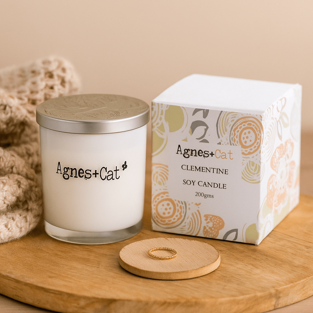 Тихое пламя встречается с ярким цитрусом, превращая простые моменты в мягкую, сияющую тишину. Соевая свеча Clementine от Agnes+Cat объединяет тепло и аромат, создавая спокойный, ровный свет, который наполняет комнату уютом. 🕯️🍊