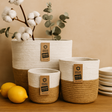 Набор из 3 корзин для хранения из хлопка и джута с веревкой