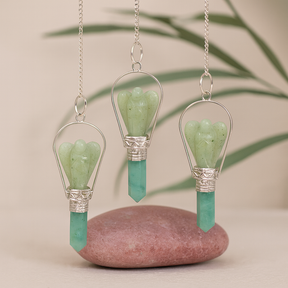 Держите цепочку легко и позвольте маятнику найти свой центр; его размеренный размах способствует ровному дыханию и спокойствию ума. Шестигранная вершина из прозрачного кварца предлагает четкие линии и четкий, отзывчивый маятниковый ход, в то время как зелёный авантюрин придаёт мягкое, полупрозрачное свечение. Ангелов часто воспринимают как символы заботы и руководства — тихое напоминание прислушиваться к себе. Зелёный авантюрин часто ассоциируется с обновлением и открытостью; прозрачный кварц — с ясностью и внимательным присутствием. Маленькая бусина у конца цепочки обеспечивает удобный захват, когда вы делаете паузу, задаёте вопрос и наблюдаете. ✨