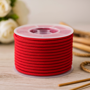 Плетёный красный шнур ощущается гладким и надёжным между пальцами, с мягким блеском, который ловит свет. Его устойчивый профиль 3 мм удобно лежит на коже и приносит ясную, яркую нотку цвета. 🔴