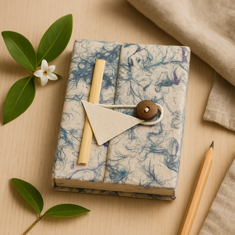 Bežná cena £1688Jednotková cena /NedostupnéNa skladeBlue Cotton Lokta Paper Notebook 15x12cm 45 Leaves