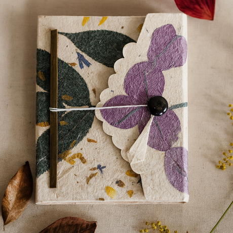 Pressed Bougainvillea Lokta Journal, Handmade in Nepal 15x12cm