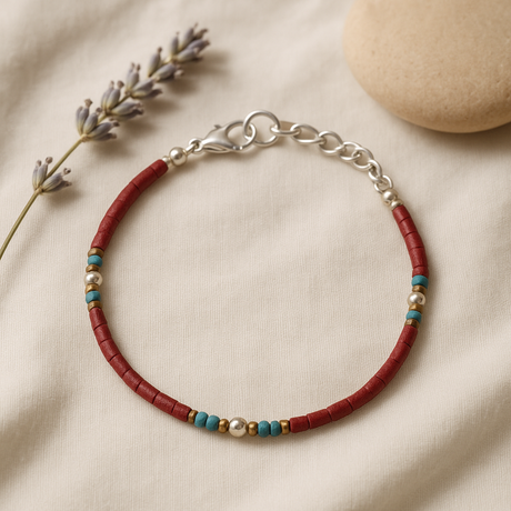 Bežná cena £500Jednotková cena /NedostupnéKorálovo tyrkysový kmeňový náramok s korálkami nastaviteľný reťazový nepálsky