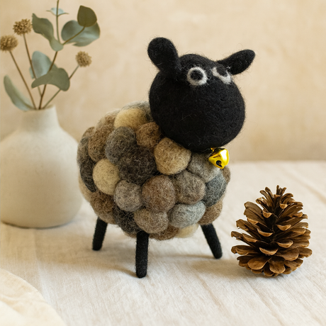 Bežná cena £2788Jednotková cena /NedostupnéPlstená ovčia dekorácia, ručne vyrobená sivá s golierom a zvončekom