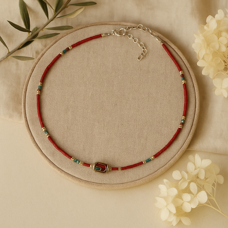 Bežná cena £3513Jednotková cena /NedostupnéNa skladeKorálkový náhrdelník z koralu a tyrkysu Nepálske kmeňové nastaviteľné retiazka