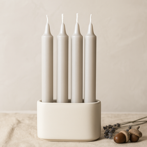 Štíhly stĺpec svetla v jemnej strieborno-sivej farbe, tieto sviečky prinášajú tichý, nadčasový lesk na stôl, do čítacieho kútika alebo do kúta vyhradeného na rozjímanie. Ich hladký, lesklý povrch upúta pozornosť bez zbytočností a pozýva k ľahkému zastaveniu sa. ✨