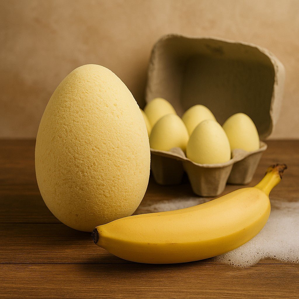 Varmt vatten väntar. I din handflata, en blekgul, äggstor badbomb med en mjuk, matt yta—fin och pudrig som pressade kronblad. Släpp ner den och låt denna lilla ritual möta dagen med lugn. 🍌