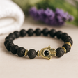 Lavasten pärlarmband guld hamsa kristall