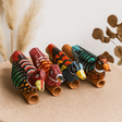 Håll bamburöret och blås försiktigt för en klar ton; variera din andning för ett mjukare eller starkare ljud. Varje bit är handmålad, så färger och detaljer varierar naturligt och ger varje anka sin egen karaktär. 🌿