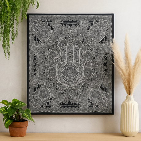 Yatak Örtüsü ve Duvar Asması - Çift Pamuk Hamsa