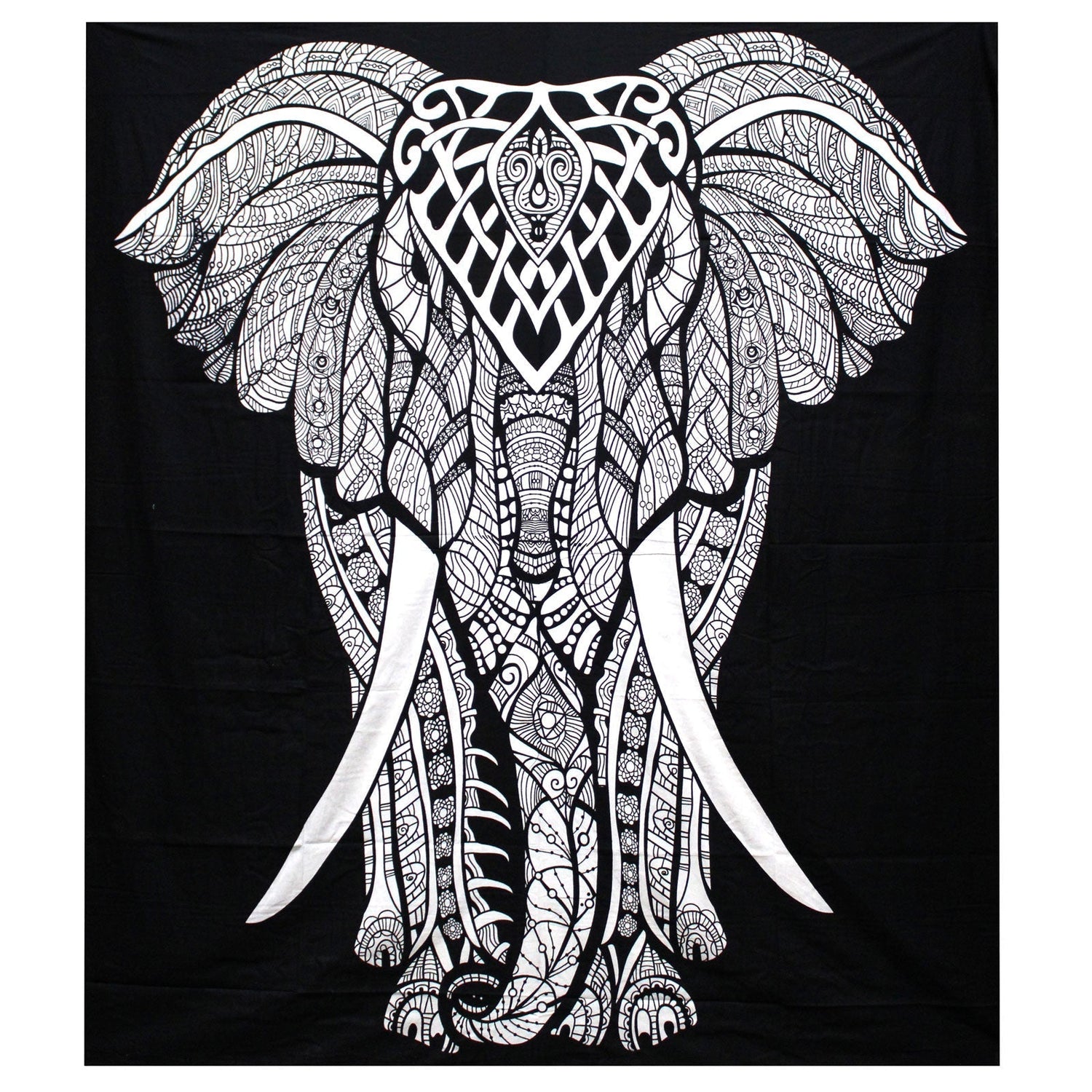 Siyah-Beyaz Pamuklu Çift Kişilik Yatak Örtüsü Duvar Asması Fil
